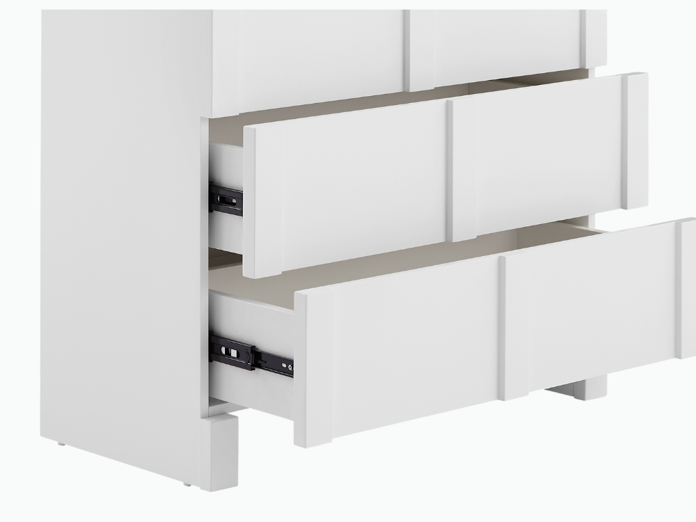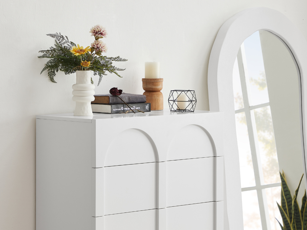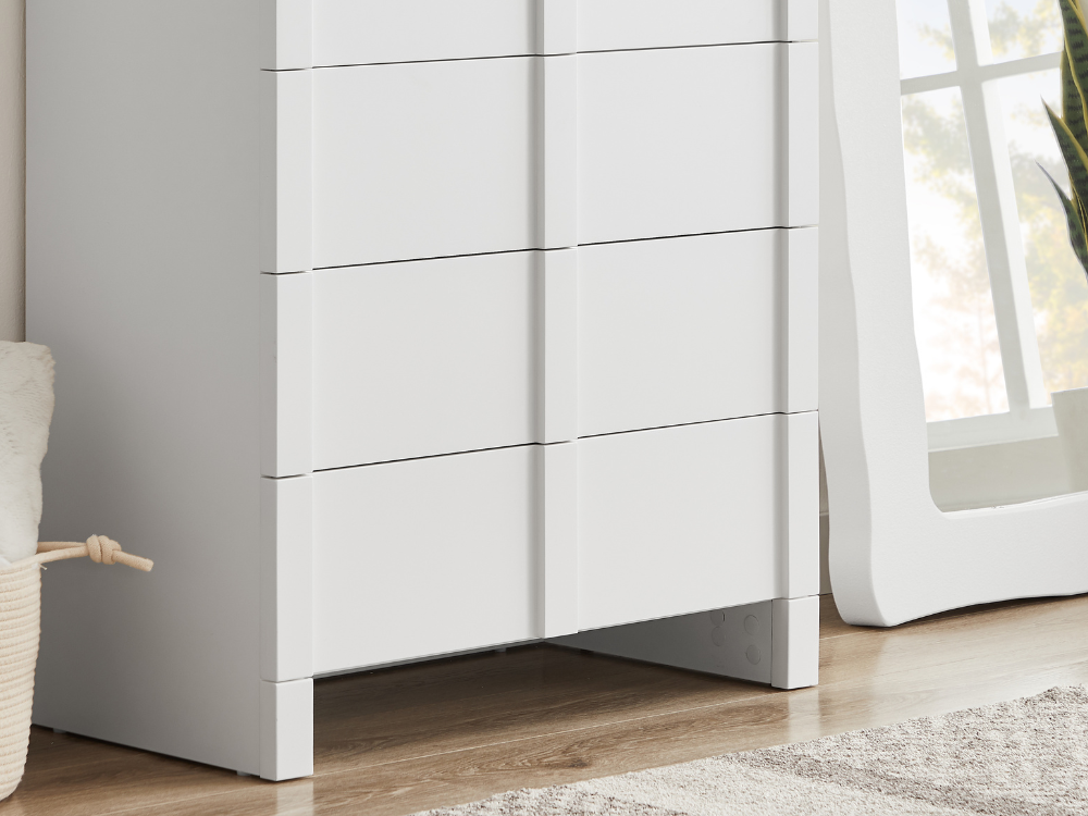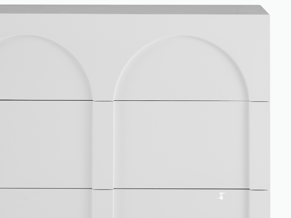 With its sturdy melamine construction and safety features such as its anti-topple anchors, the Arch chest of drawer is built to handle even the liveliest households.