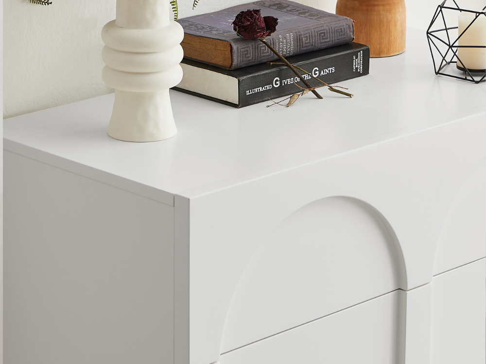 The Arch collection includes a bedside table, a 2-door sideboard, a 3-door sideboard, a TV unit, and chest of drawers to fit your need while keeping your home looking breezy and organised.