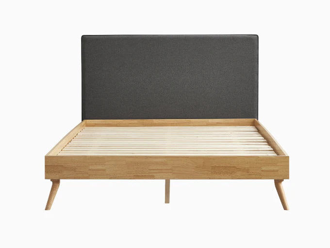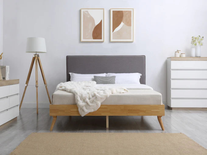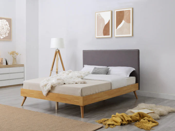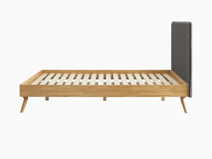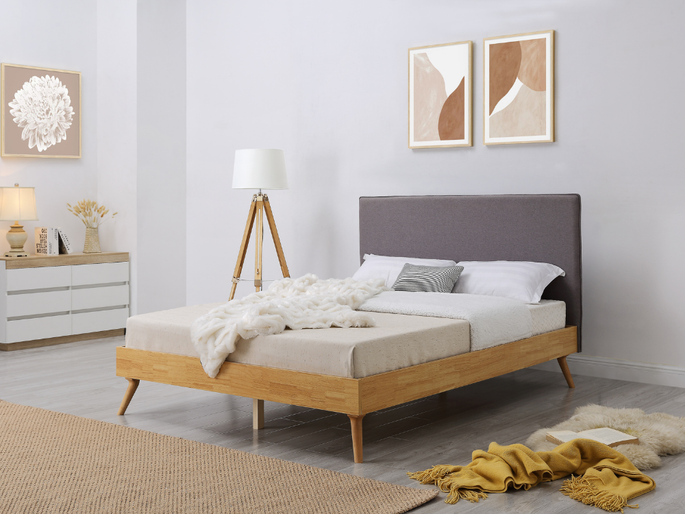 The grey-and-wood color combination of this bed frame and headboard ensures super elegant aesthetics.