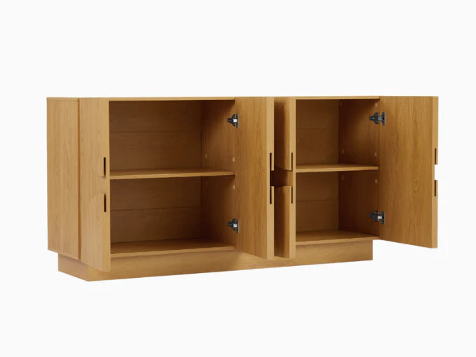 The Cleo Sideboard effortlessly blends the relaxing and elegant styles of mid-century and Japandi design. With clean lines, subtle details, and a harmonious balance of elements, it embraces the essence of these sought-after interior design trends, bringing a touch of sophistication to any home.