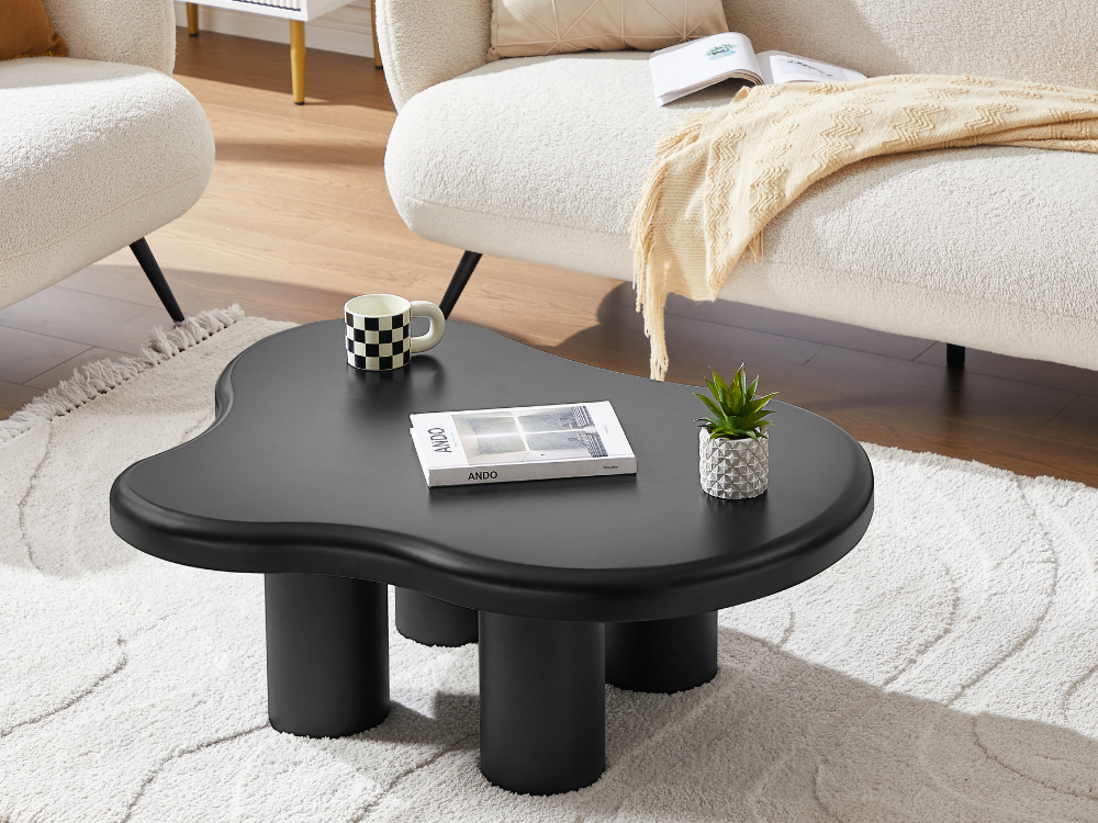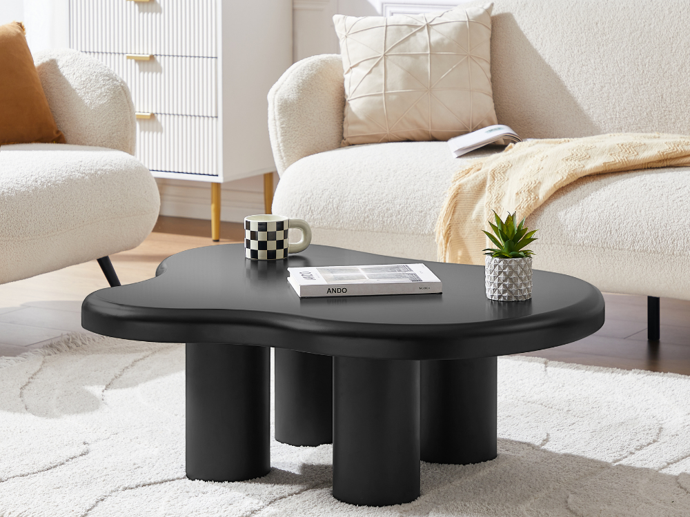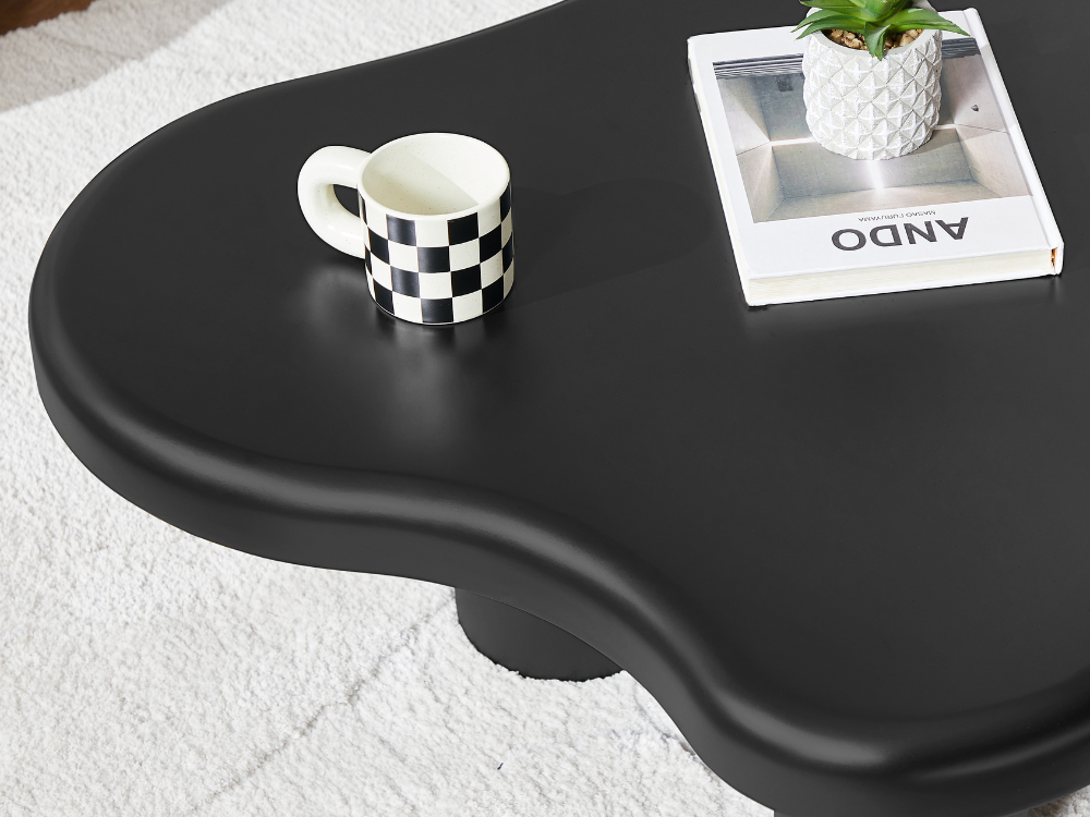To let the unique shape of the Cloud Coffe Table shine, we chose a sleek white/black colour that matches the theme but also fits perfectly with any colour theme, from the most minimalist to the most exuberant.