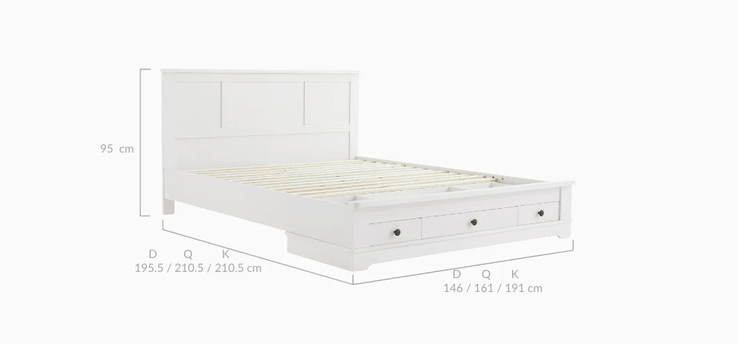 - Drawer Interior (Queen)55 W x 36 L x 14 H (cm); Centre 55 W x 70 L x 14 H (cm)