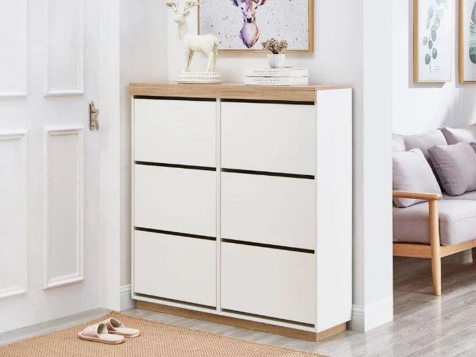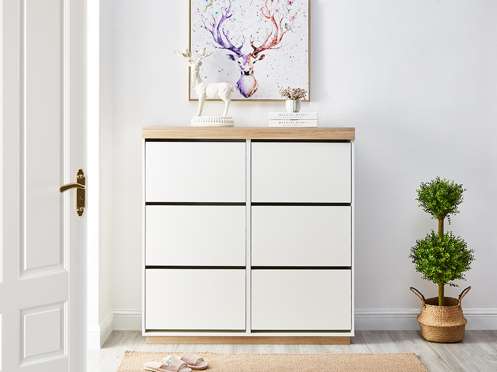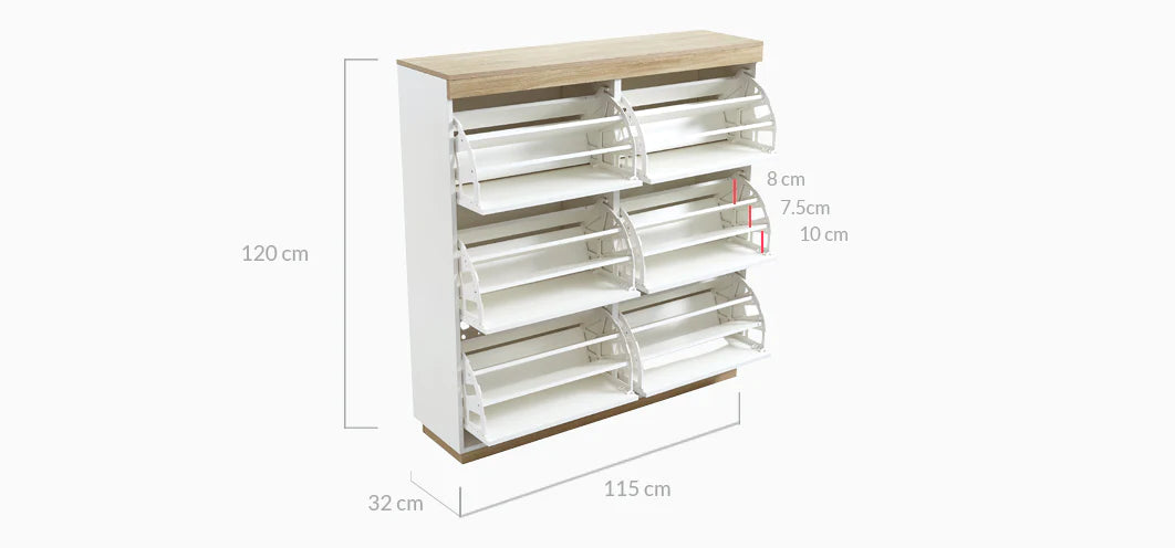 Featuring 3 shoe tiers per storage drawer, this beautiful shoe cabinet allow to store 50 pairs of shoes!