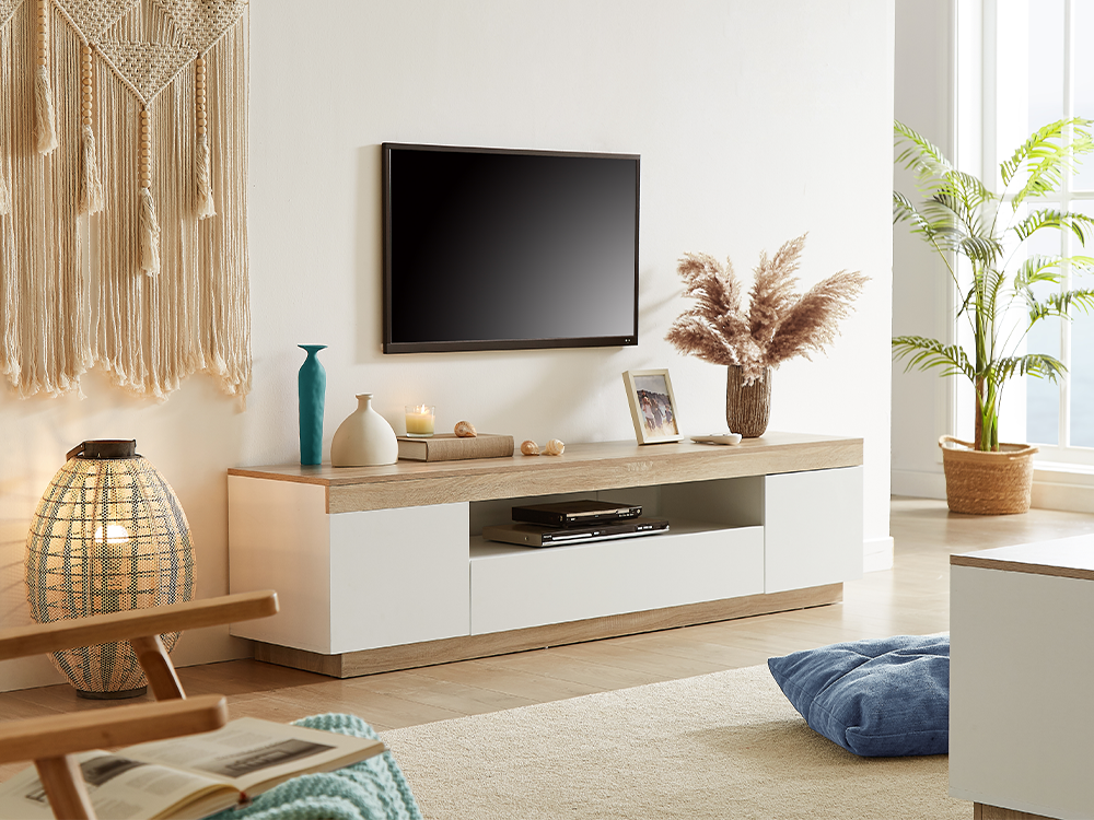 You’ll never have to worry about cable tidiness with this media console as it as an empty back that will allow easy organization of all wires.