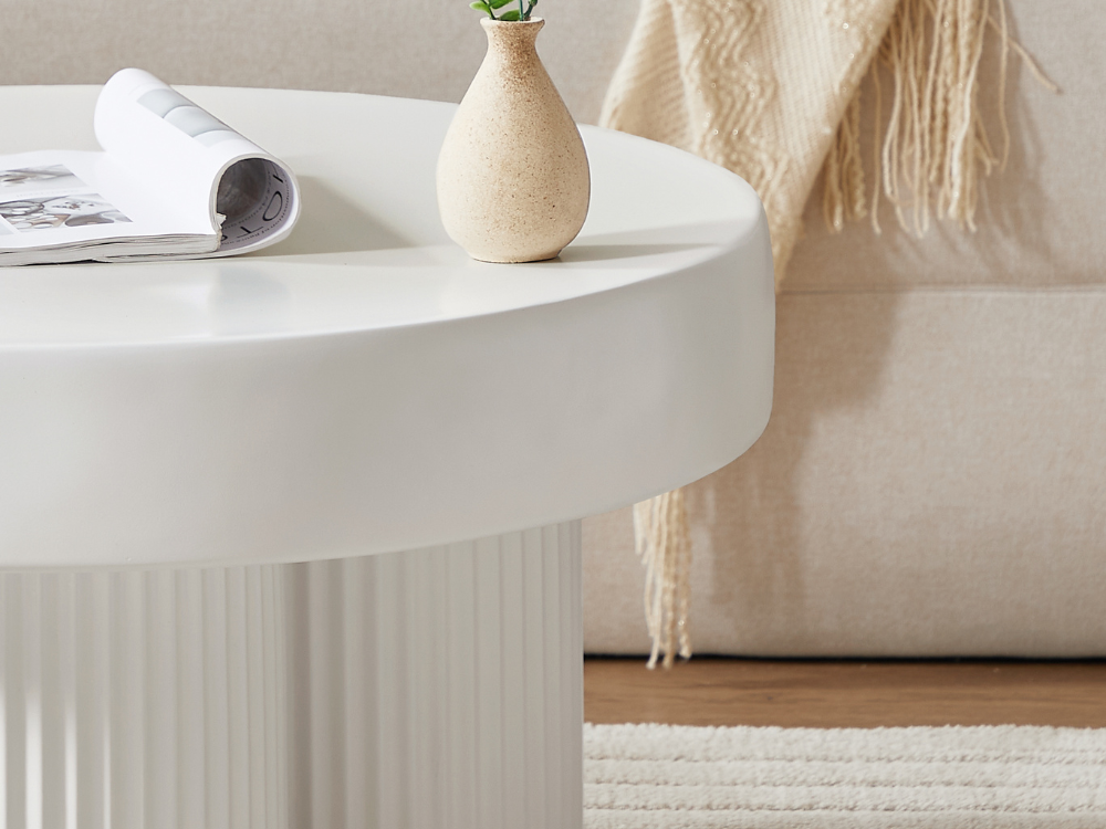 With its streamlined round shape and elegant ribbed details, the Mason coffee table is akin to a modern art piece and will elevate the look of your living room