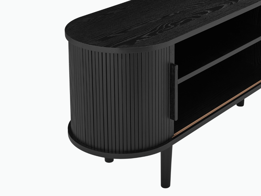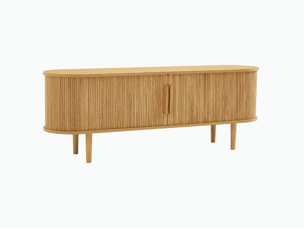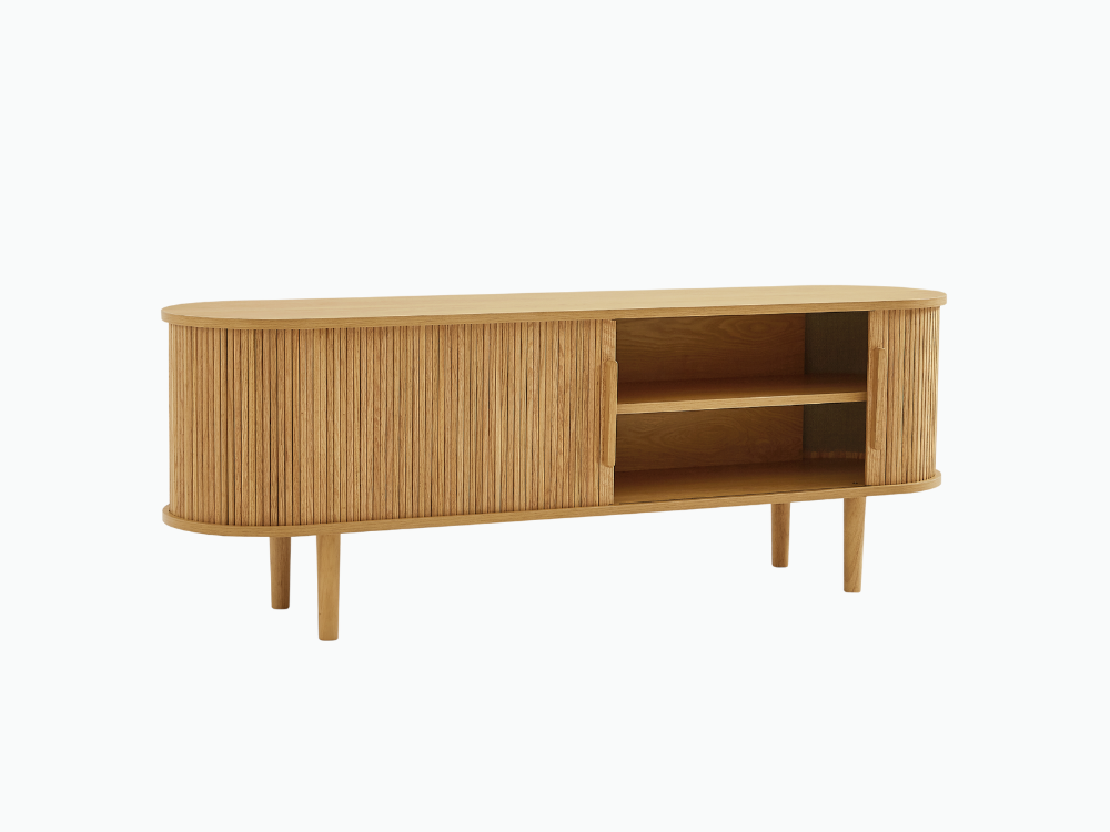 The eye-catching oval shape of the Tate TV unit is sure to leave an impression on your guests. Not only are curved furniture right on trend, but they are also an excellent choice to keep smaller spaces from feeling cramped.